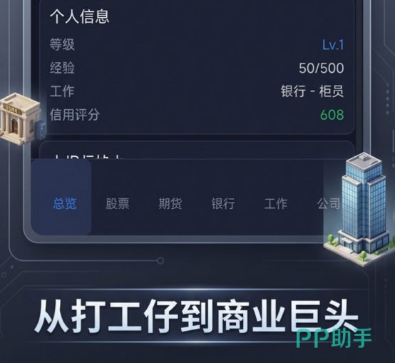 本作构建了层次分明的个人成长体系:前期聚焦求职技能与现金流管理;中期强调商业模式设计与组织能力建设;后期考验资本运作水平与战略协同能力。所有经济行为均置于动态演化的市场环境中,价格波动、供需关系、政策导向、同业竞争等变量实时影响经营结果,玩家需持续观察、快速响应、精准预判,在复杂博弈中捕捉确定性增长机会。