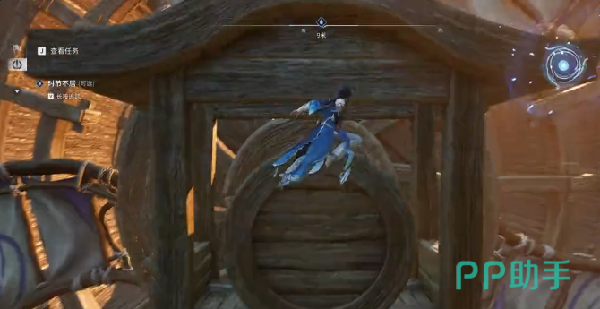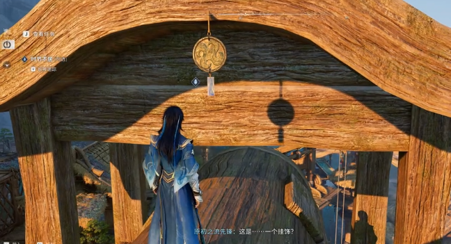 登顶后无需横向探索,直接绕行至水车背面。此处悬挂一枚特殊挂饰,材质与水车本体接近,呈哑光棕褐色调,易被忽略。建议缓慢平移视角,细致扫描背侧结构,在发现挂饰后缓步靠近,待交互提示出现时点击确认,即可成功接取“时节不居”任务。