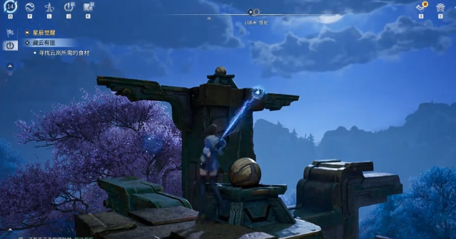 进入青野遗迹后,请先清剿场景内全部敌对单位。此时中央区域将显露四组石质基座,其中仅有一处初始发光——此为正常状态,并非异常或进度缺失。地面散落的碎石暂无需拾取,切勿提前牵引。请将视角转向左侧,定位第一根可攀爬柱体,靠近后使用交互键登顶,在顶部平台触发旋转铁球装置。旋转方向无硬性要求,顺时针或逆时针均可,核心判定标准为:地面同步浮现的圆形图示是否由灰变亮。图示亮起即代表该机关已激活成功。