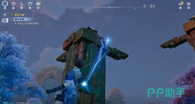 石门开启后,洞口随即显现。此时将镜头向右平移,确认右侧悬浮平台位置,进行精准跳跃落点。平台上立有一块可牵引石碑碎片,使用牵引技能将其平稳拖曳至洞内指定凹槽处完成嵌入。随后返回遗迹主地面,找到最初出现的那块碎片,再次牵引并送入洞内另一处预留缺口。两片碎片全部归位后,石碑复原完成,遗迹核心机制正式激活。