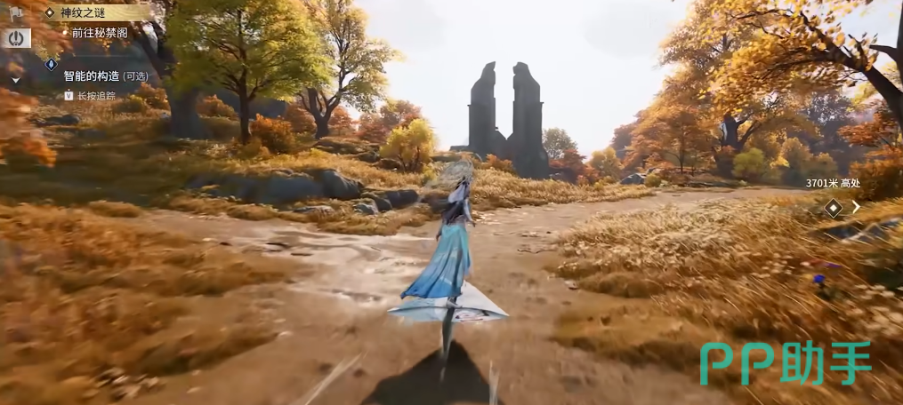 任务起始点位于淡烟林传送锚点,面向西南方向行进,在石碑旁与NPC岑栩对话,激活后续流程。根据指引抵达遗址区域时,注意避开主楼梯路径——目标NPC蒋风实际位于楼梯东侧边缘,与其交互后将解锁下一环节坐标。