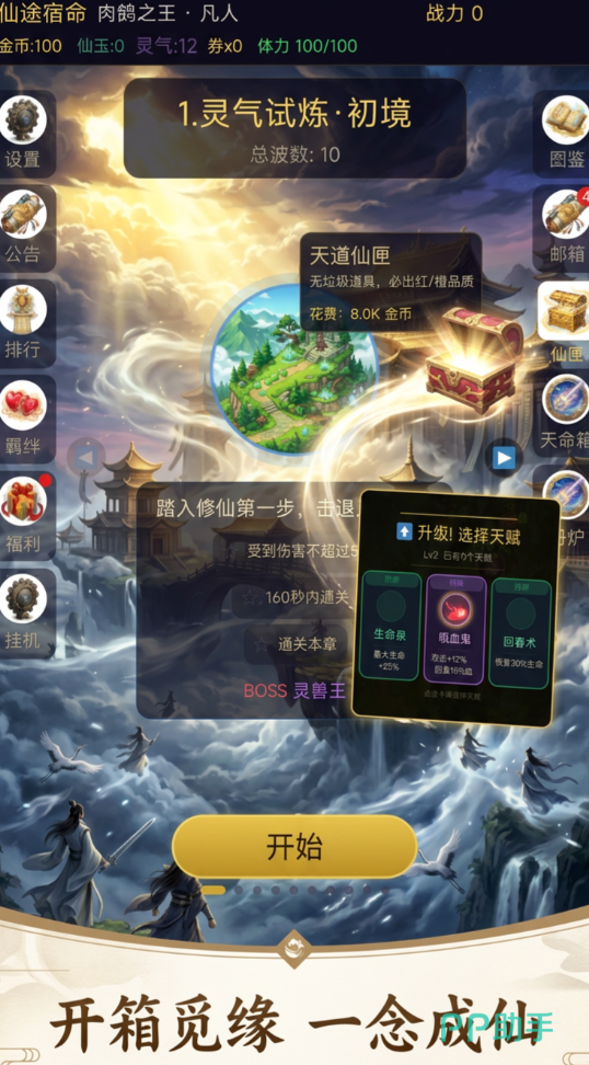 本作的核心成长逻辑围绕“开箱驱动”与“羁绊构建”展开,兼顾轻松感与策略深度。区别于传统刷图升级模式,玩家通过开启随机宝箱获取四大类核心资源:法器、灵宠、仙技、仙缘。每件装备均具备独立属性与成长路径,而真正的质变来源于“羁绊”——当特定组合(如套装或跨品类搭配)达成时,将激活额外增益效果,涵盖攻击力、闪避率、暴击伤害等关键战力维度。这种高随机性与强构筑性的结合,让每一次开箱都兼具惊喜感与目标感。