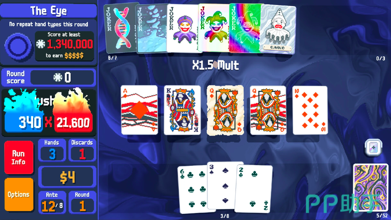 为提升策略深度与长期可玩性,游戏采用“底注+盲注”驱动的关卡推进结构,使每一轮挑战都具备明确的成长节奏与资源管理维度。这一设计显著提升了整体策略复杂度,远超同类卡牌构筑类产品。其中,小丑牌不仅承担增益功能,更深度参与卡组构建逻辑——例如支持“全K高牌流”等特色流派成型,极大拓展了Build多样性;同时,战斗系统被高度抽象化为纯粹数值演算模型,在保障公平性的同时,强化了决策权重与策略纯粹性。