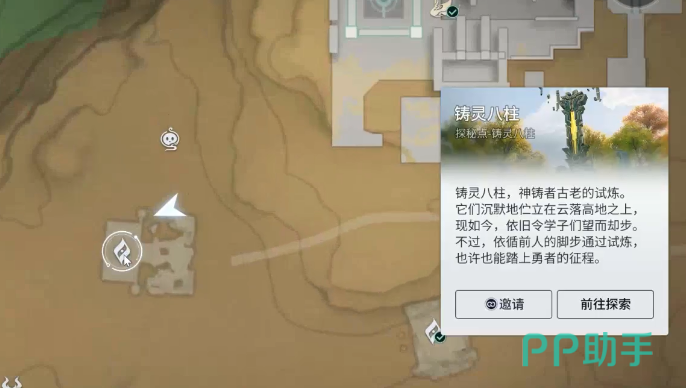 试炼核心环节设于东云落高地,共分布八个标记为“铸灵八柱”的隐藏探秘点。部分点位被地形遮蔽或嵌入障碍结构之中,需主动激活探测机制(默认按键为1)方可显形。此过程综合考验玩家的空间感知能力、技能释放时机判断及路线规划效率。合理统筹探索顺序、精准使用探测技能,可显著缩短完成耗时并降低资源消耗。成功定位全部八处遗迹后,玩家将获得阶段性目标达成反馈,并同步解锁最终决战准备状态。