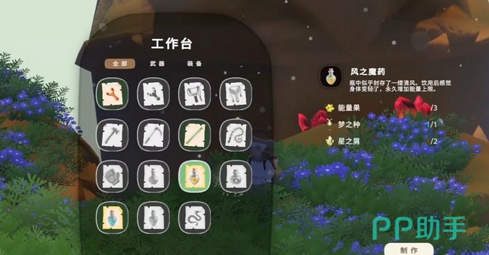 在玩法结构上,《风与牧场》采用双轨驱动设计:一侧是深度模拟的农场系统——从土壤改良、作物轮作、动物驯养,到资源精炼与建筑升级,形成闭环生产链;另一侧是高自由度的探索模块——支持蒲公英滑翔、浮岛跃迁、风场借力位移、弹弓远程互动及近战环境交互,部分区域还嵌入轻量叙事任务,逐步揭示星群崩解背后的文明线索。