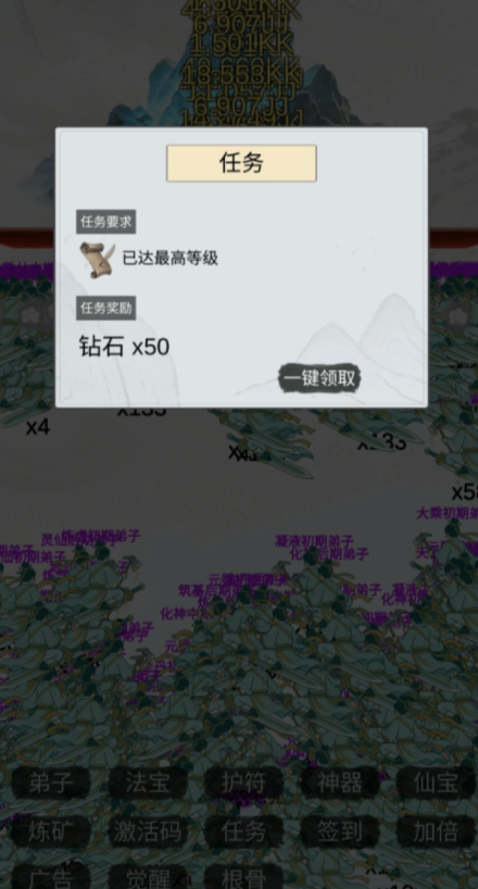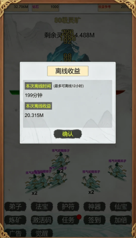 每个矿山都会有相应的挖掘时长,随着门下弟子的增加,挖掘时长会逐渐变短,完成挖掘之后,可以一次性的把所有资源都收集起来,随着矿产挖掘,大量的神器法宝可以供玩家自由选择使用,建议在游戏里多去完成弟子收集和能力提升,在大量弟子的帮助下,提升挖掘速度,让角色快速获取资源的同时,境界能快速飞升,不再是独自一个人的修炼,要带领弟子共同完成宗门修炼。