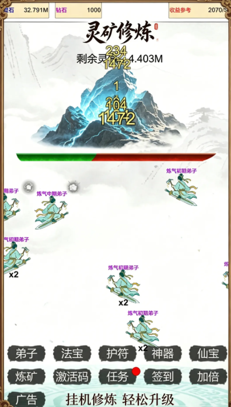 游戏里会设置大量灵脉仙山,玩家可以借助飞剑代步,快速在场景里穿梭,寻找更高价值的脉矿,不需要再去战斗或者勾心斗角,借助轻松挖矿即可完成角色修炼,每次招募来的门徒都只有基础的能力,要带领他们不断挖矿,提升自身境界,弟子境界越高,挖矿速度会越快,不想在游戏里费力对战的成员,可以借助游戏收获矿山灵脉,利用自身的能力挖穿三界,收集更多零卖资源。