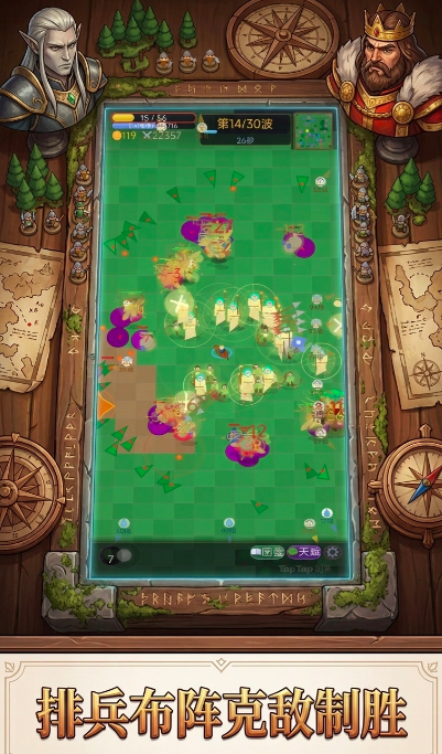 游戏整体画面采用极简的2D风格,在布局上,迎合大多数平民肉鸽游戏的地图设定,界面布局结构更为合理,采用竖屏排版模式,精简化的模型几何图案,让玩家更好锁定地图以及兵种的分布位置,通过几何图形的大小则代表了兵种的等级,对于初次进入的小伙伴也能够更加精准的锁定兵种情况。