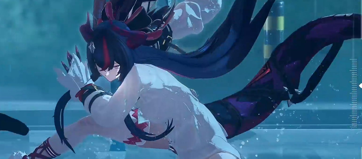 真红的整体形象,走的是一种比较活泼又带点野性的路线。上身白衬衫,下面配着半截袜,看起来很普通,但是一旦进入战斗状态,那个从左手延伸出来的鬼爪,就会让人感觉完全不一样。还有背后那条尾巴,动起来的时候,特别有存在感。官方在她的形象设计上,花了不少心思,既不是那种穿着厚重铠甲的战士,也不是单纯的可爱萝莉风,就是一种说不清楚的混搭感,但偏偏就是好看。