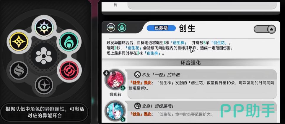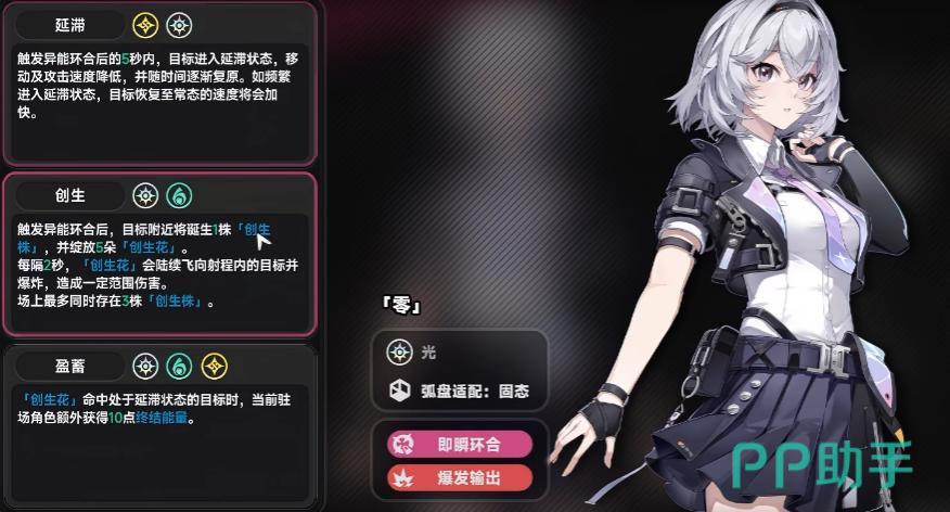 光+相+灵:盈蓄——当创生花命中处于延滞状态的目标时,驻场角色额外获得环合能量,形成正向循环。