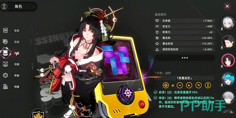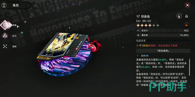 角色拥有六类基础异能属性,分别命名为光、灵、咒、暗、魂、相。该设定构成角色定位与机制适配的基础。进入角色主界面后,可直观查看其所属异能类型、匹配弧盘种类、当前等级及各项属性数值,为后续培养提供明确依据。