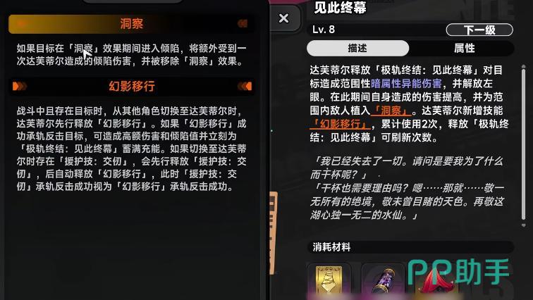 达芙蒂尔并非传统驻场输出角色,而是典型速切型协战单位。其E技能为基础输出手段,每次全队QTE入场均可为其叠加强化层数,提升伤害与倾陷效率。叠满2层后,E技能将发生形态进化,不仅伤害倍率显著提升,连招动作亦同步变更,视觉与性能双重升级。