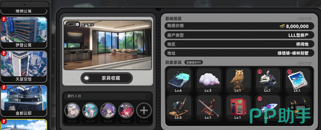 资产配置方面,购置房产是开启家园系统的前提。拥有住宅后,玩家可邀请已解锁的角色入驻同居,并通过日常互动提升亲密度。亲密度等级越高,可触发的专属对话、剧情事件及实用增益奖励越丰富。若进一步购入载具,还可邀请角色伙伴共乘出行,强化社交沉浸体验。