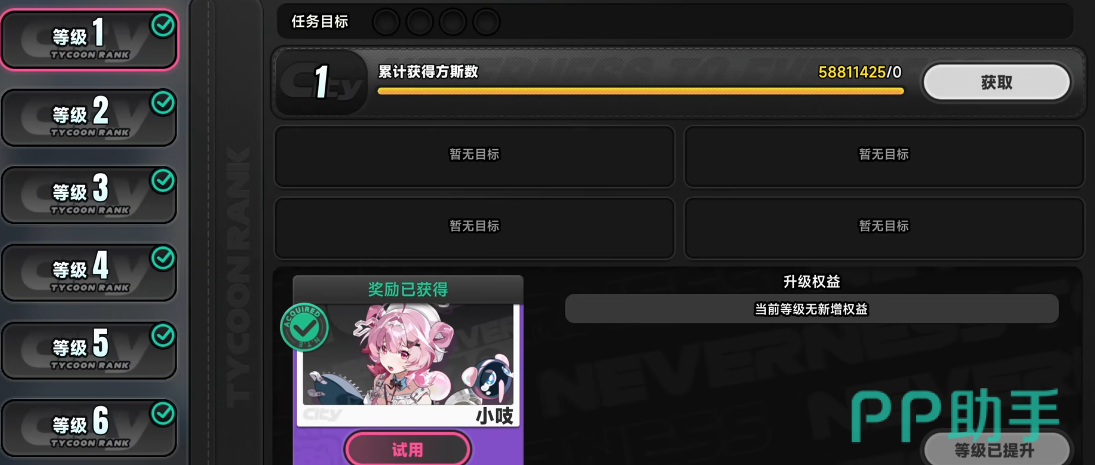 在异环构建的现代都市世界里,玩家将化身城市经营者,通过多元化的模拟经营玩法逐步成长为真正的都市大亨。游戏内深度整合了“都市大亨系统”,该系统不仅是核心成长线,更是获取关键资源“方斯”的主要途径。方斯作为游戏中最核心的通用货币,直接关联房产购置、载具解锁、角色养成及战力提升等关键环节。同时,达成特定系统等级后,玩家还可解锁强力输出角色——小吱。