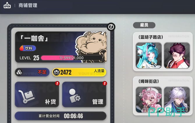 商业经营维度中,“一咖舍”咖啡店为代表性盈利场景。玩家可自主上架餐品与饮品,搭配具备“提升出餐速度”或“防止顾客逃单”两类都市技能的角色驻店工作,从而稳定提升日营业额。随着经营能力增强,支持拓展至多店并行模式,实现方斯收入规模化增长。所获方斯可在“猎人交易所”中兑换各类养成道具与战斗资源,直接强化队伍实战表现。