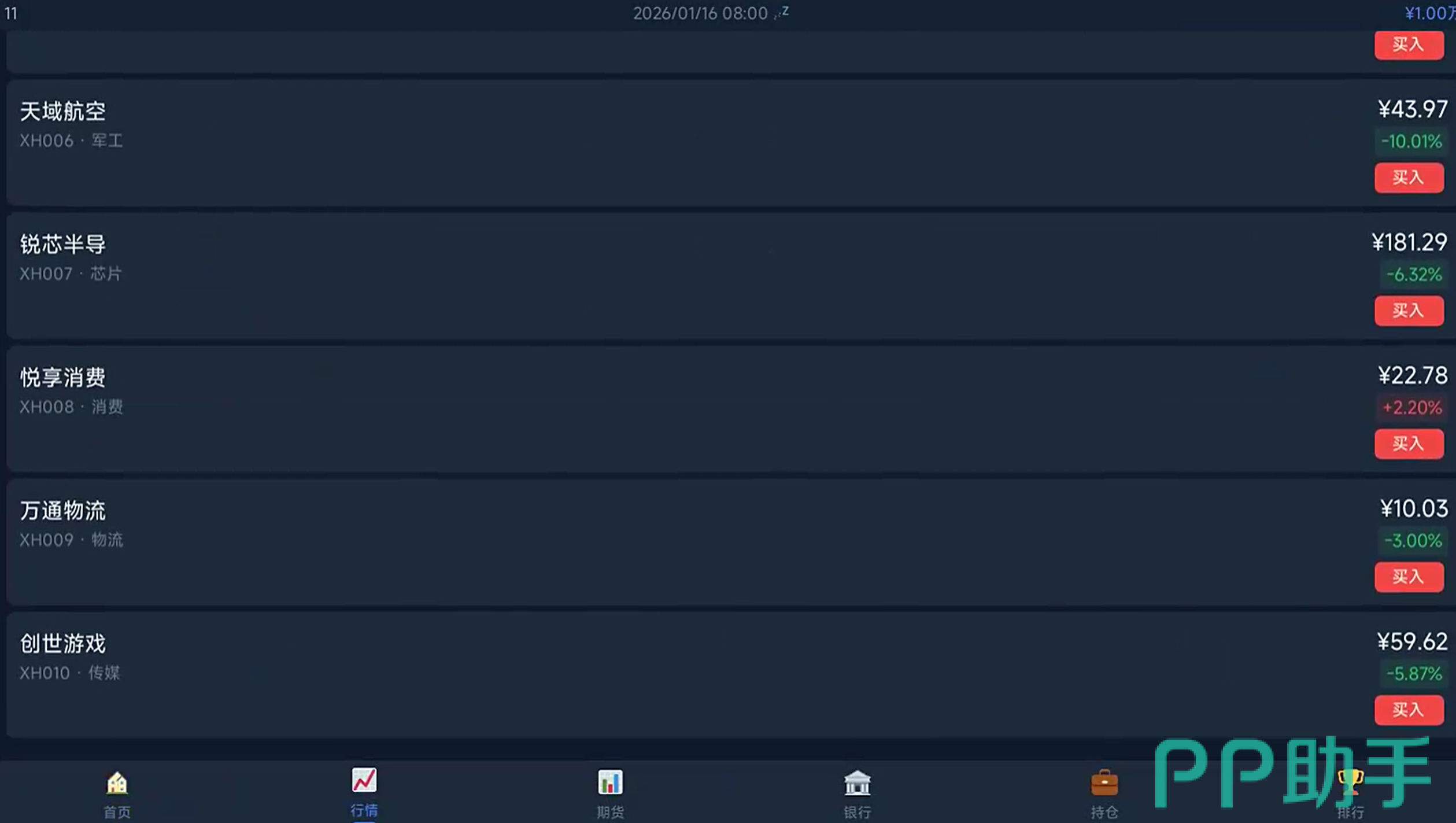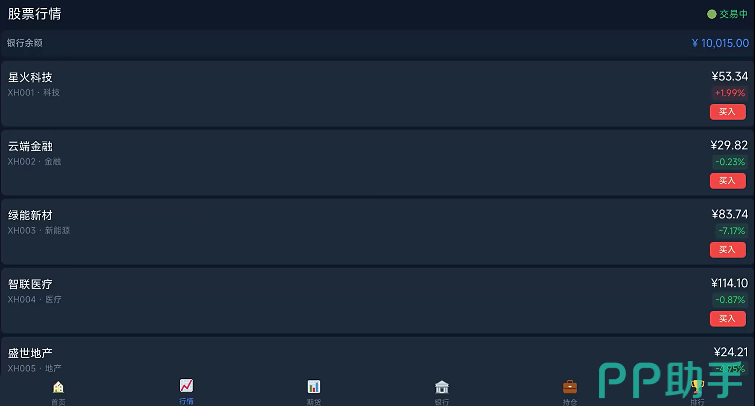 游戏开局即发放10万启动资金,玩家可自由选择多元投资路径——包括股票交易、期货合约、银行定期理财等,每种方式均对应差异化风险与收益模型。市场环境并非静态设定,而是基于行业周期、供需关系及随机事件动态波动,不同板块如科技、能源、消费等轮动表现各异,切实还原现实经济运行逻辑。