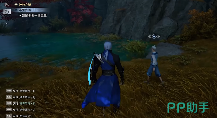 根据任务指引,需陪同NPC老者前往两处瀑布开展调查。第二处瀑布水幕深处藏有一柄关键武器,务必拾取——此物为后续流程必要道具。取得后可直接返回盼归谷,利用传送点快速复位,沿原路径高效抵达目标位置。
