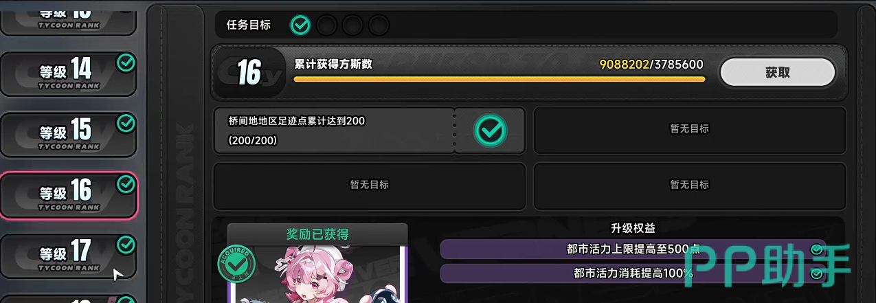 值得注意的是,等级跃迁存在显著效率拐点:16级为关键分水岭。突破该等级后,所有方斯来源收益将实现倍数增长,整体资源循环速率大幅提升。而达成16级本身难度较低——只需在城市范围内购置基础住宅、商用楼宇及至少一款载具,配合角色等级同步推进至相应区间,即可顺利完成进阶。
