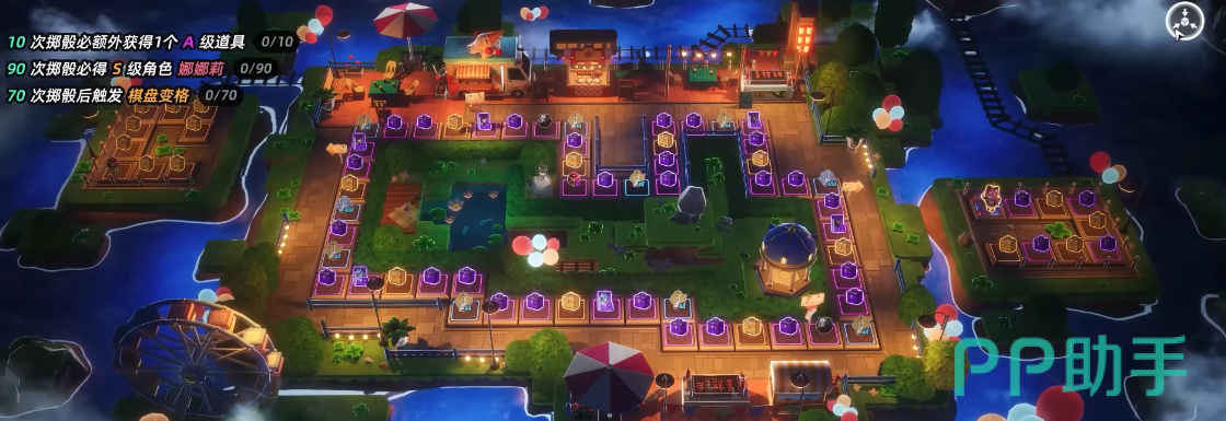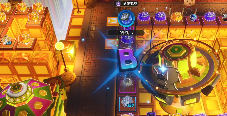玩家通过掷骰前行,在棋盘上触发不同格子效果:金色宝箱有概率直接抽取S级角色;蓝色宝箱则稳定提供基础弧盘与棋子。所获棋子并非一次性消耗品,而是可积累、可定向使用的战略资源,全部存入专属兑换商店进行多维转化。