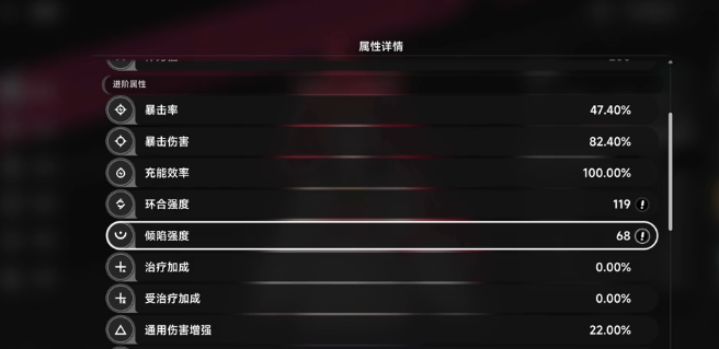 异能倾陷和属性输出也会深度的绑定在一起。怪物血条下面的白条就是韧性条,使用对应弱点属性攻击很快就会积累数值信条在被击破之后,怪物就会进入到倾陷状态,此时受到的所有伤害都会提升,正好是打出爆发性输出的关键窗口期。而这一个属性主要就是作用于增加伤害,在培养角色时就应该重点去堆叠,可以很明显的提升爆发的能力。