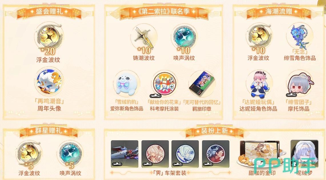 版本开启当日,玩家将通过“盛会典礼”活动直接获得20次限定角色抽取机会及专属周年纪念头像框;第二索拉联动专题中,可累计获取10次限定武器抽取与10次常驻角色抽取,并同步解锁限定装饰品、定制摩托涂装、旅行主题印章等收藏类道具。此外,“海潮流增”限时活动还将额外派发10次限定抽卡机会,以及绯雪主题饰品、达妮娅手办模型、绯雪团子外观等特色奖励。