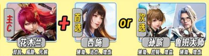 最后为大家推荐的是花木兰跟西施的搭配,这个搭配当中花木兰她因为同样是作为输出类型角色,所以主要就是进行物理伤害,带来的输出核心绝对也不差,那么西施的话就可以给他带来更多的支援能力,特别是在环境当中,其实可以提升的增益爆发还比较多,在关键时刻大家需要一定续航的时候,其实她是可以带来部分治疗的,前期用她的话聚怪牵引也是比较有优势的,其实加入了阵容之后,大家也可以让花木兰在整体的输出环境当中得到更多的优化,在斩杀线当中,增伤光环也可以推高花木兰在爆发的时候带来的数值,回血的能力当中则是保证了队伍当中续航如果跟不上的情况下,她的操作就可以保证我方的技能可以循环起来,当然她一般只要给输出角色挂上增益用法就非常简单,其实作为这样一个纯粹类型的辅助角色,她应对敌人的手段可能比较少,但是只要是我方的输出角色强的话,那么她在这里能够施加的队伍加成就会非常高。