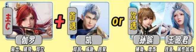 第一个为大家推荐的这种组合就是伽罗加上铠,铠在游戏当中是可以直接站场来吸收对面带来的伤害,而且后期利用自身的格挡机制还可以造成足够的反弹,在这方面的对战手段来说,他是可以快速的吸取对面的一些韧性数值,也就是说白条效果上面,大家是可以通过铠的能力来进行压制的,在这里就可以保证我方在找到对面破绽的时候可以快速进行攻击,而伽罗在输出的时候一般都是站在安全距离之外的,那么在输出的同时,她的火力数值是一定要在敌人处于虚弱状态的时候速的进行攻击。