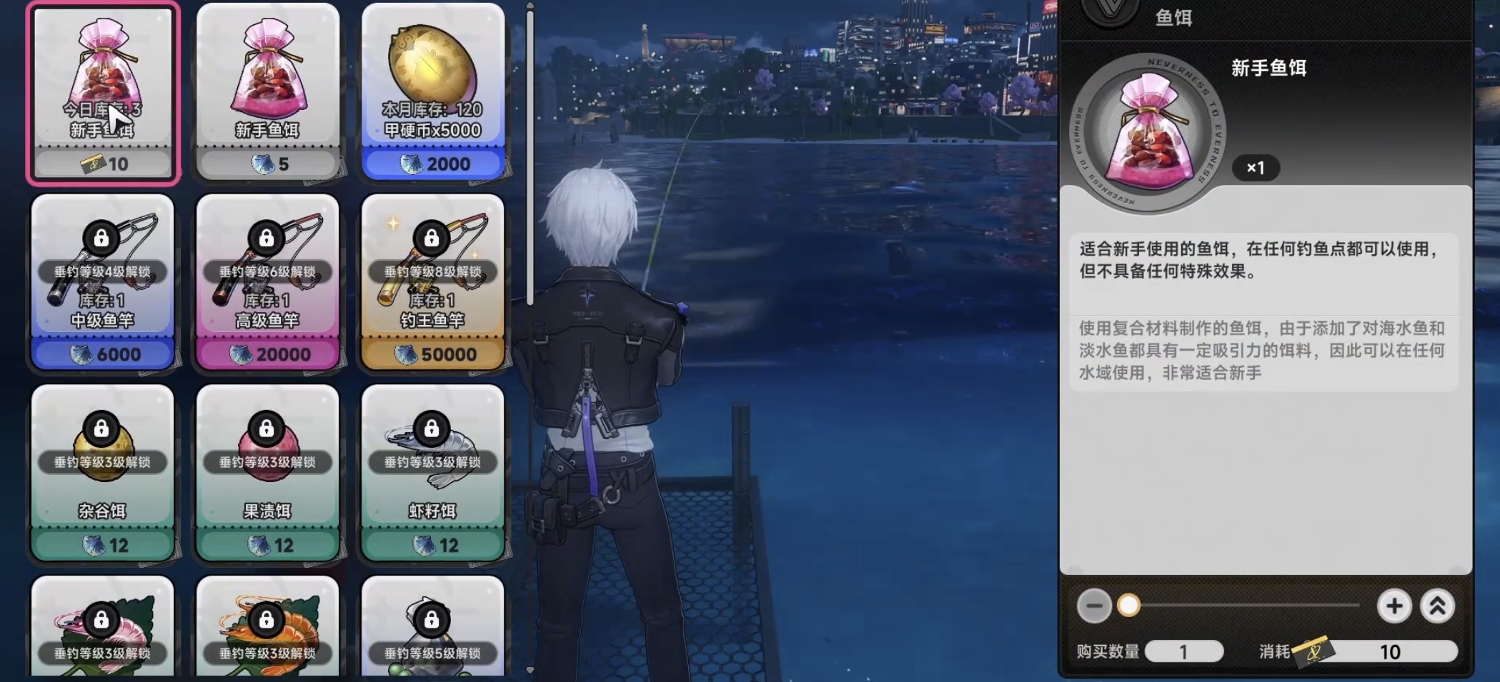 《异环》不仅是一款节奏紧凑、打击感十足的动作冒险游戏,更融合了深度沉浸的都市模拟与休闲养成系统。在开放世界中,玩家可自由探索沿海城市、码头街区与远海区域,其中“海上钓鱼”作为高频互动玩法之一,兼具策略性与解压感,是新手快速积累资源、解锁图鉴成就的重要途径。
