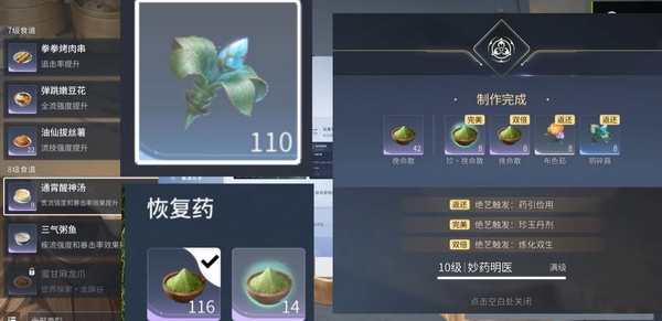 游戏中血药种类丰富,功能差异化明显。例如:拳拳烤肉串可提升追击率;弹跳嫩豆花增强全流强度;通宵醒神汤则同时提高贯流强度与暴击率。不同配方对应不同战斗场景需求,建议根据队伍配置与副本机制灵活搭配。