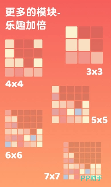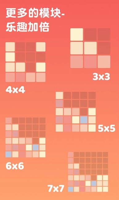 支持经典模式、极速模式与闯关模式三种玩法。玩家通过上下左右滑动操作,使相同数值的方块碰撞合并,生成更高位数(如2→4→8→16……直至达成2048目标)。每完成一次合成即可获得对应积分,关卡目标明确,进度清晰。儿童可通过本作提升数字敏感度与归纳推理能力;成年用户则能在反复刷新个人最高分的过程中收获持续成就感。整体节奏舒缓,适配碎片化时间体验。