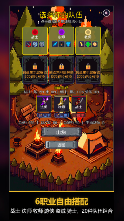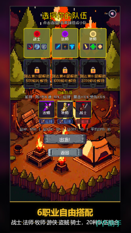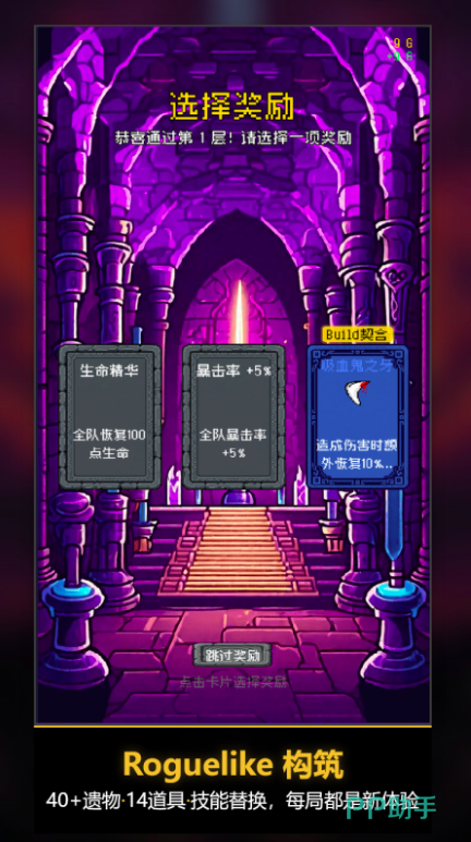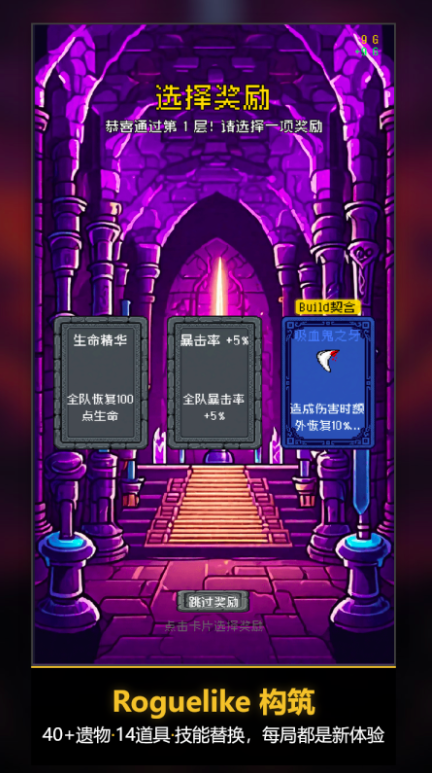本作采用“三人小队”构筑机制,玩家需从六种职业中任选三位组成队伍,开启六选三模式。每位职业均配备专属被动属性,配合20余种创新组合路径,确保Build多样性与策略深度。战斗全程支持自主决策——包括角色选择、奖励判定、技能搭配及遗物获取,真正实现“自己做主,拒绝甩锅”。