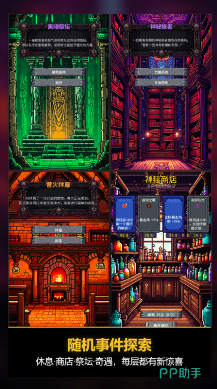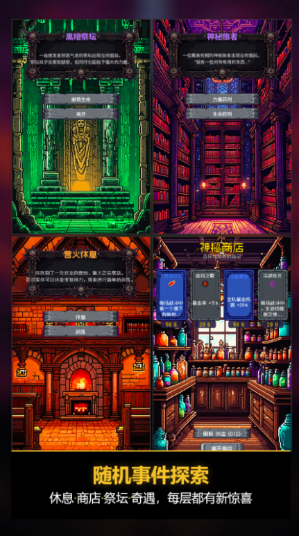 地图结构丰富,包含休息区、祭坛、商店等多元区域,内置超20个清洗类随机事件,保证重复挑战不重样。塔内共设7位Boss,难度逐层递进,机制各具特色。技能搭配为通关关键,但新手无需焦虑——前期系统将智能推荐适配卡牌,新手保护阶段体验流畅,上手门槛显著降低。