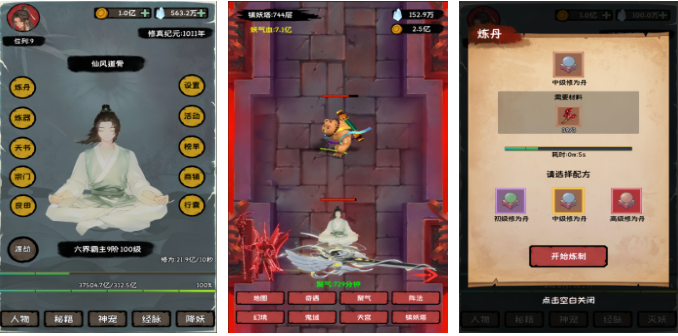本作主打大世界探索与轻操作深度养成。超广域无缝地图覆盖山海、洞天、上古遗迹等经典修真场景;战斗采用竖屏单手适配设计,辅以智能挂机系统,兼顾碎片化时间与长线成长需求。副本类型涵盖心魔试炼、群星夺魁、跨服论道等,配合境界压制、灵根相克等机制,强化策略维度。角色成长路径清晰,从炼气至大乘皆有可视化反馈。