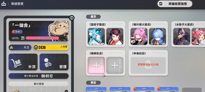 第一天一定要优先开店铺,全力推进主线解锁咖啡店,这就是能够稳定赚钱的渠道。店铺升级的经验还有提取收益是直接挂钩的,收益提取的越多,那么经验上涨的也就更快。没有事情就不如去看一下店铺收益足够升级,那么就可以马上去操作,然后换上高价格的商品,就可以大幅度的加快升级的效率,会拥有源源不断的金币。都是活力,想要更快的赚钱,那建议首先选择刷店长特工1-1关。几十秒就可以获得1200万。