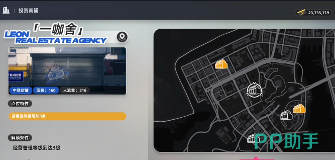 在这里可以购买住宅类的房产,还有商铺。目前游戏里面可以购买的总共有五间店铺,每一间店铺的解锁条件不同,分别需要2级管理等级以及3级管理等级。店铺购置完成之后,管理操作也有明确的限制,并不支持远程操控,玩家必须要走到店铺内部才能够去完成设置。进入店铺之后,屏幕就会自动的弹出商铺操作按键,只需要跟随着指南就可以完成基础性的任务,得到对应的奖励。走到店铺柜台的位置,就可以看到有管理商铺的互动提示,点击进入之后,这里就可以上阵两名雇员。