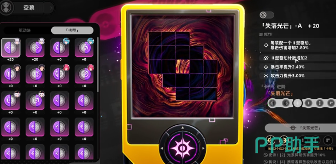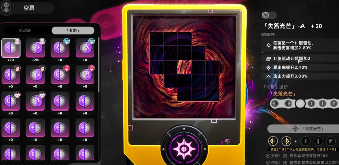 最后就是和大家说一下空幕系统,这一个系统是由驱动块还有卡带组合在一起。卡带会分成aB2类,只有a加b组合在一起才可以激活二件套四件套,另外也可以选择2+2混搭。不过目前优先凑齐四件套,收益会更高一些。卡带的主属性还有副属性都是随机的,例如光系角色就比较适合光系异能伤害加成主属性。副属性基本上都是装配对应型号的驱动块,就能有效提升攻击属性,还有暴击属性。之后就是队伍搭配以及异能结合,游戏中会有六种属性,相邻属性还可以触发一个不同的效果。