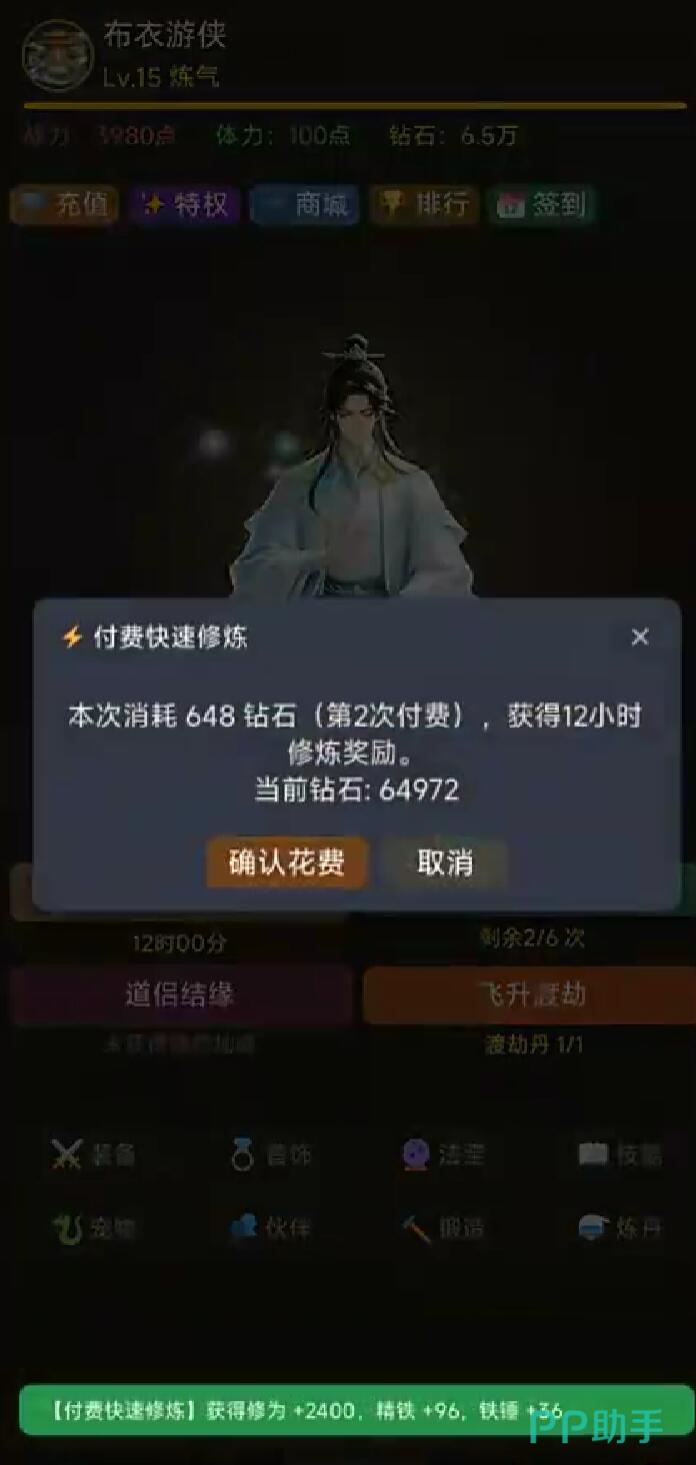 玩家在选择挑战副本的时候,哪怕是失败了,其实也不要放弃,因为系统这时候会直接赠送80点安慰奖。所以说先新手玩家在选择体验该游戏的时候也能够稳步的提升,不会因为失误而直接停止滞不前,在整个游戏当中,并没有所谓强制的充值,也没有隐藏的消费,甚至没有VIP等级方面的限制。主打的就是能够让玩家享受修仙的快乐。