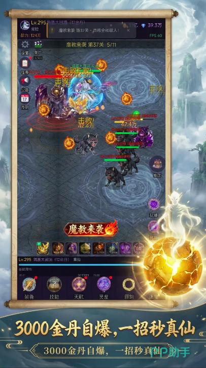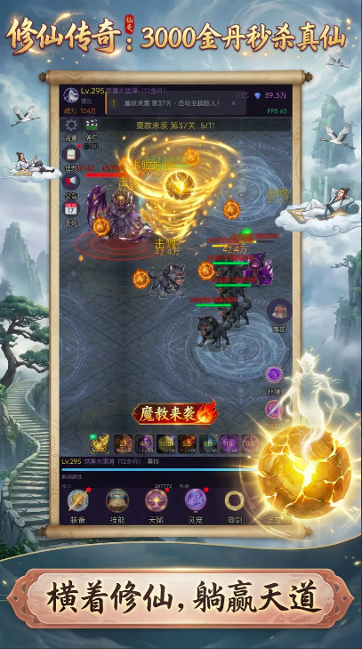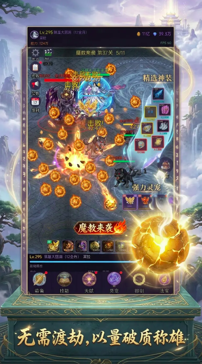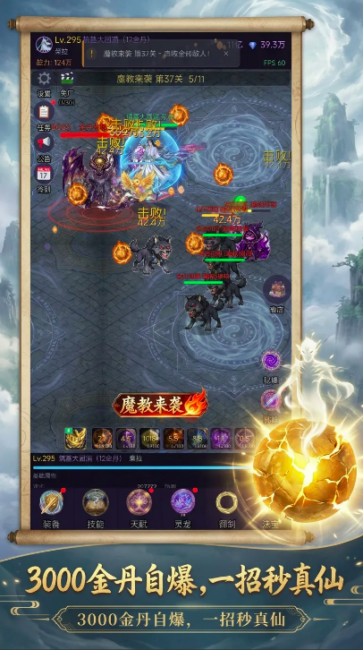最后再来说一下画面风格,在游戏的动态画面当中融入了独特的东方仙魔元素,虽然没有精致的3d技术,但通过爆金丹的特效画面也为玩家们带来别样的爽感。