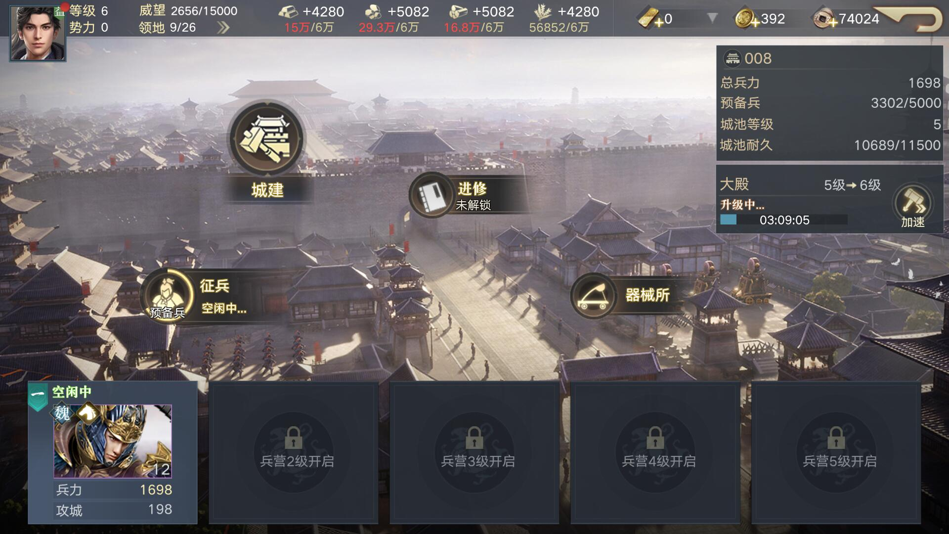 游戏内主要包含的玩法包括策略和模拟经营这两部分。每位玩家在开启游戏之后都将会获得一块属于自己的地盘,你可以在这里建造起一个属于自己的国家。兵营是这里最重要的一个部分,士兵的等级与战斗力与兵营的等级都是挂钩的,而士兵的种类也比较繁多,他们之间通常存在着互相克制的关系,在战场上能够发挥的作用也各有特色,玩家们需要根据本场战斗的地图来选择合适的队伍配置。