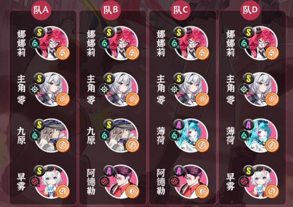 接下来就选择给娜娜莉组建队伍,由于娜娜莉作为灵属性的角色,环合属性比较搭配光+咒系列。所以说玩家在这个时候搭建阵容的话,就直接选择娜娜莉,九原或者是薄荷,此时还需要加上主角以及阿德勒。阿德勒其实在游戏初期的时候进行使用,但是到了游戏后期的时候,由于阿德勒的强度不高,这时候就直接更换早雾。之所以建议玩家这样搭配,主要就是想要让娜娜莉更好的去发挥自己的作用,主角其实作为光属性的队友,玩家也需要合理的利用,这样的话,不管是在开荒推图还是在打高难度副本的时候都会特别的稳。