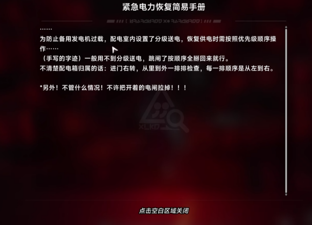 进到第三层之后,第一件事不是往前冲,而是先把电力搞定。二楼楼梯口斜对面有一个房间,电闸就在里面。这个电闸看起来没什么特别,但操作顺序是有规定的,必须按照从里到外、从左到右的顺序来拨。顺序搞错了,电路就通不了,后面的门也开不了,就会一直卡在原地。很多玩家在这个地方,绕了好几圈,其实就是因为没注意这个顺序。把电闸搞定之后,顺手看一下房间里的柜子,里面有一把钥匙,这把钥匙后面要用到,先收好。