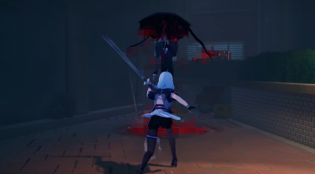 雨伞人平时的状态,非常具有迷惑性,就是一把伞立在地上,没有任何明显的动作,也不会主动追人。但它有一个触发范围,只要玩家走进这个范围,战斗就会立刻开始。触发之后,场景会直接切换成一个封闭的异化空间,地面、光线、背景全都变了,跟正常场景完全不一样。这个空间是进去就出不来的,只有把雨伞人击杀掉才能离开,所以进去之前,最好把状态调整好。