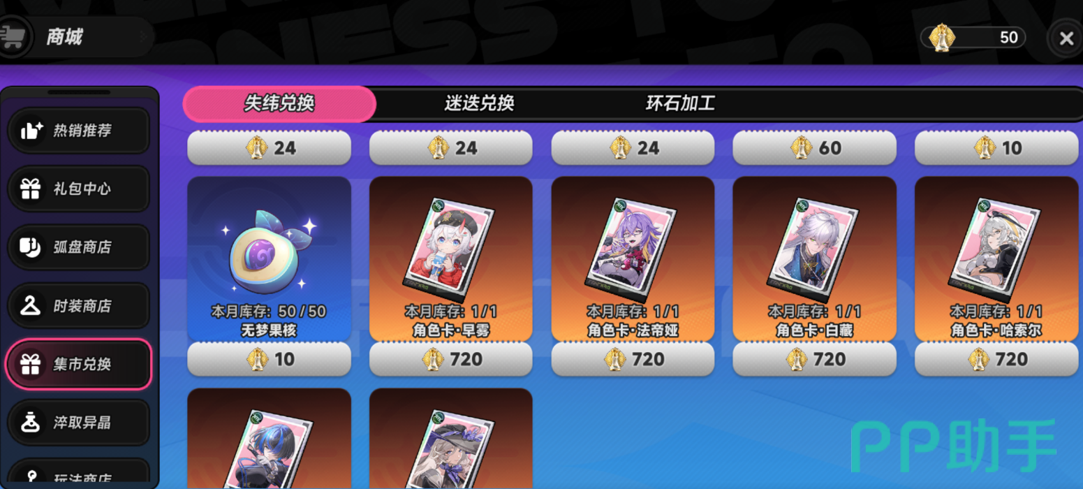 第二种方式来自“集市兑换”系统:该机制并非传统商店,而是融合概率抽取与策略选择的棋盘式玩法。玩家通过掷骰移动棋子,抵达对应格子后获得奖励。其中,“失纬棋子”作为高频掉落物,可在专属兑换商店中按比例置换无梦果核,具备较高可控性与资源规划空间。