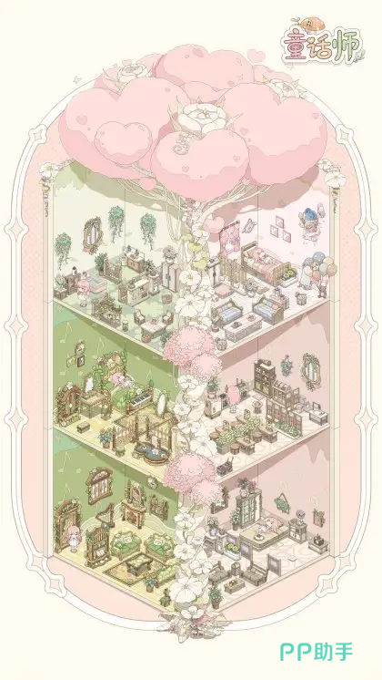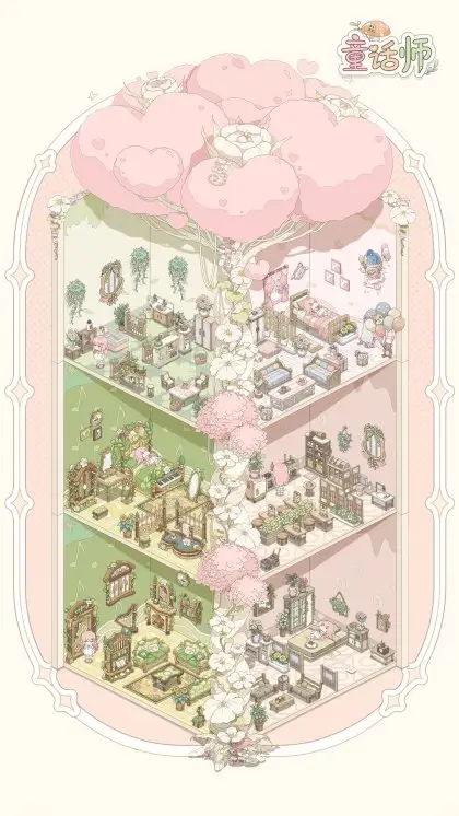 模仿现实生活中的昼夜交替,童话师中还加入了昼夜交替机制以及光影系统,让玩家可以跟随着天气的变化来养成日出而作、日落而息的习惯,享受慢节奏生活的温馨感,此外,玩家在游戏中还可以自由的对小家进行布置,你可以按照自己喜欢的风格,打造自己的小家,比如说如果你喜欢粉色系的小窝的话,那么久可以用粉色系植物转化的家具来装扮小窝,若是喜欢蓝色系的小窝的话,就可以使用蓝色系的家具进行装扮哦,不管是哪一种装修风格都由玩家自己来决定,让玩家享受亲自动手装修小窝的快乐。