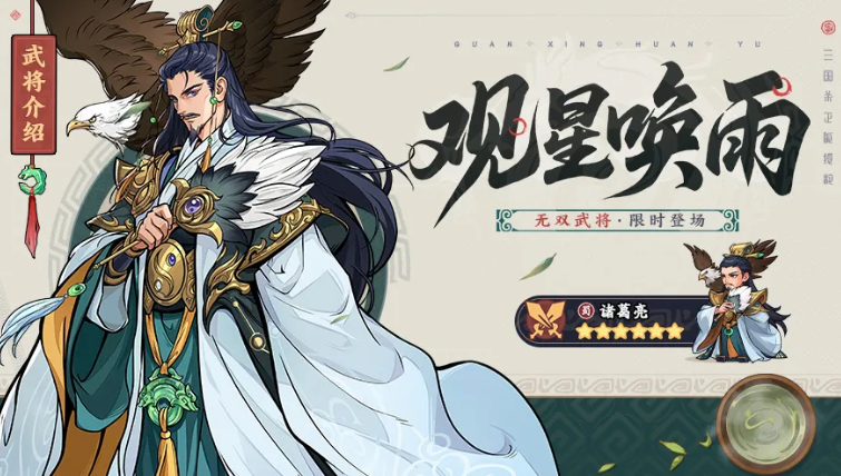 三国杀武将觉醒里面的诸葛亮不再只是一个基础的辅助角色了,前期就算抽卡大家也没有办法拿到他,只有后期在活动卡池里面大家才有机会拿到诸葛亮,三国杀武将觉醒诸葛亮怎么样在基础判断当中,其实他也是限时登场的一个无双品质武将,所以强度上面大家绝对是可以放心用的。