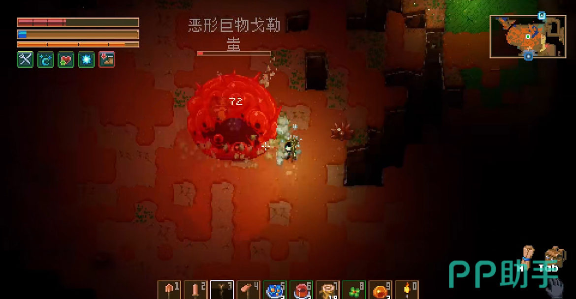 接着我们就可以来到第三个boss挑战处了,想要击败这关boss是需要一些技巧的,我们需要先收集三个水晶头骨的碎片,碎片可以通过击败蓝色哥布林获得。把碎片合成之后,第三个boss就会出现,是一只母虫,它的实力自然是在前两个boss之上的,但是我们也不需要慌,只要做好充足的准备,就可以轻松过关。