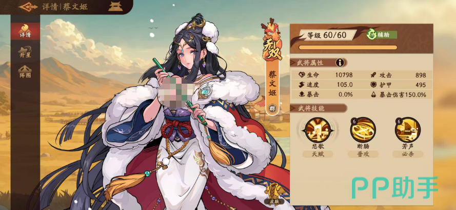 同时这样的搭配大家不管是去玩boss战,还是去普通副本当中用,其实这个阵容都是可以的,大家就要注意这里在不同位置上面用角色的时候,他们自身定位的能力一定是不能出差错的,蔡文姬用自身群体拉条能力大家用的时候一定要注意,增益跟减益都是并行的,所以一定不能乱用,她在锦囊效果当中要带的就是五谷丰登,还有无中生有这两个技能目前在能力上面都会比较符合她的能力效果,而在属性选择上面,大家就要注意她的速度属性是要放在第一位的,目前在团队当中需要的速度属性要求比较高的情况下,她的优先提升顺序也是放在第一位的,毕竟是放在这里核心位置上面使用的,所以她的速度影响到整体阵容强度的时候,就一定要快速提升起来,另外在生命防御效果上面是放在速度属性之后的。