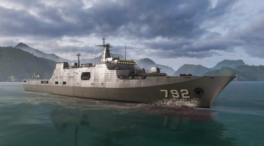 通行证的主要奖励是象岛号突击登陆舰,这艘船在游戏里的定位比较特殊。它的原型是泰国海军在用的主力舰艇,吨位在舰队里算是最大的了。武器配置方面比较全面,有两枚RUM-139集群导弹,还配了两座127毫米的主炮。防空能力也不弱,装了三座海拉姆和两座海麻雀导弹系统。比较有意思的是,它还能搭载两架科曼奇直升机,另外还有两座无人舰艇可以用。这种配置,让它在不同场景下都能发挥作用,打击能力和防御能力都照顾到了。