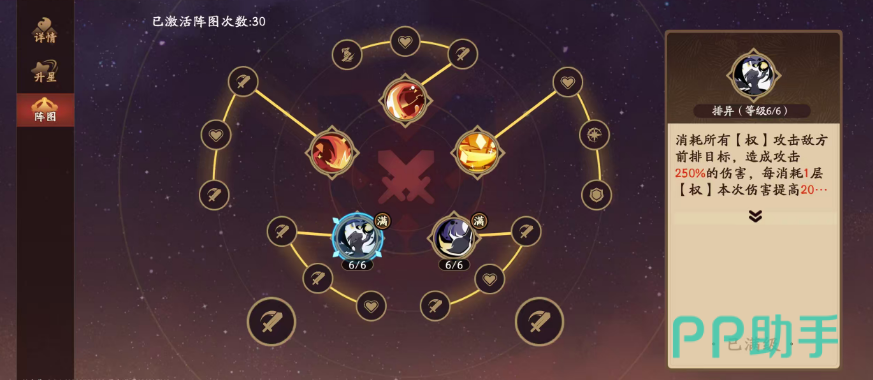另外后期在锦囊的选择上面,大家就要注意他的天赋效果是否可以触发,而在专武选用效果上面,建议大家可以先用剑阁摄权之类的效果,剑阁摄权目前提供的攻击力加成也比较多,而且在他自身概率获取权的时候还可以额外叠加更多的层数,加快了爆发节奏之后,他在锦囊效果上面可以选用的借刀杀人这类技能效果,也可以让他带来有方角色,进行输出的时候会有一部分增益,特别是这里的携带者在进行协同攻击的时候还有额外的概率进行普攻,所以目前他在有足够权层数叠加之后,承伤的效果当中也会比较高,后期他的这类效果也会为他带来更强的一个阵容搭配能力,比如在这里他如果放在阵容当中用的话,可以搭配的阵容就是周瑜跟关羽。