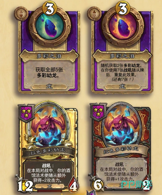 龙族也有了新玩法,新增的"多彩幼龙"关键词,给龙流派带来了更多变化。每条多彩幼龙可以给的效果都是不一样的,不仅能强化龙随从的战斗力,还可以增强酒馆法术的效果。这让龙族的构筑思路变得更灵活了,玩家可以按场上的情况,来选择合适的幼龙,打出不同的combo。